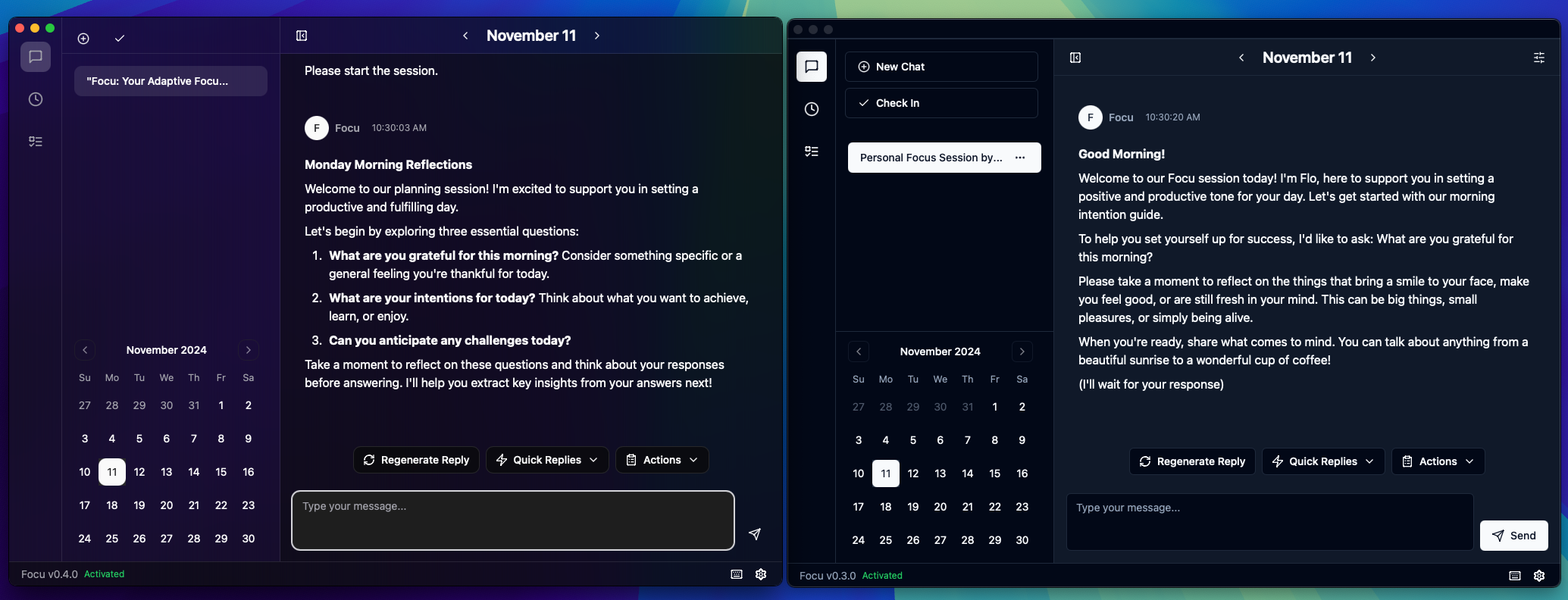 Focu has been redesigned to provide a more native MacOS look and feel, changes include transparent background and animations.